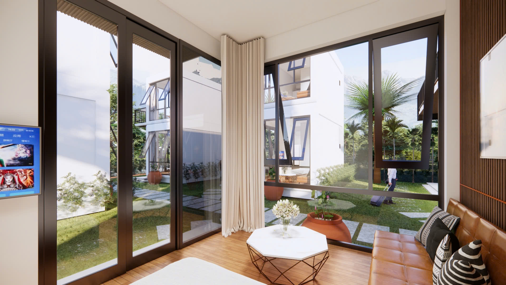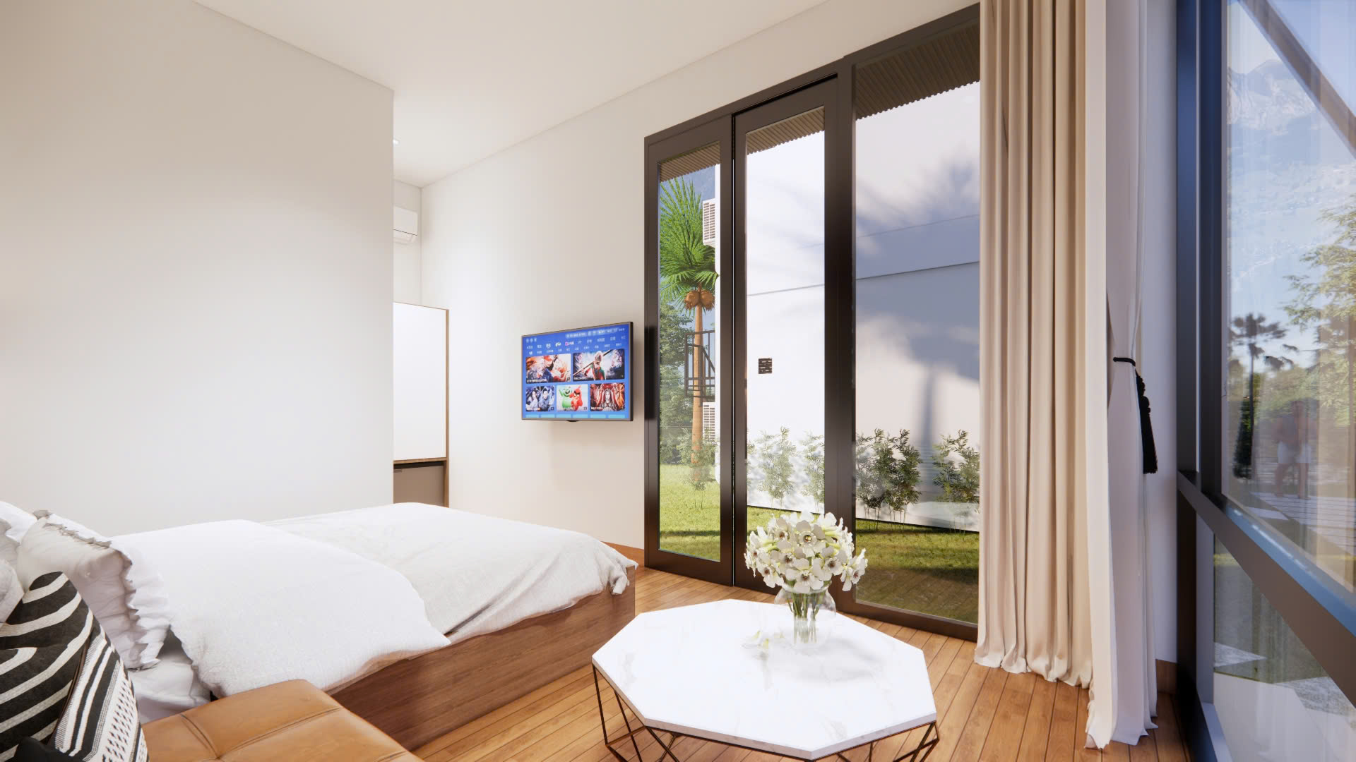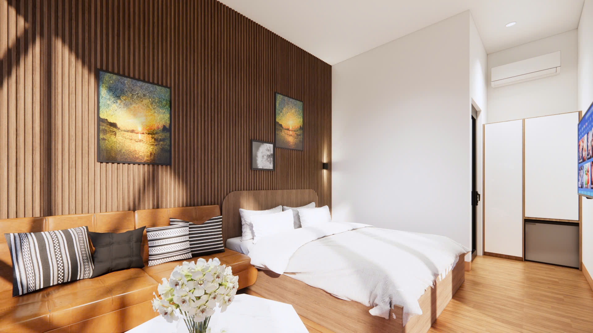 Function: 1 bedroom, 1 bathroom, kitchen combined with living room