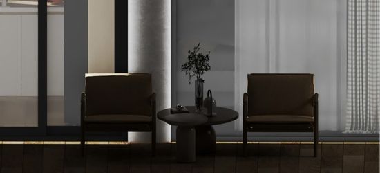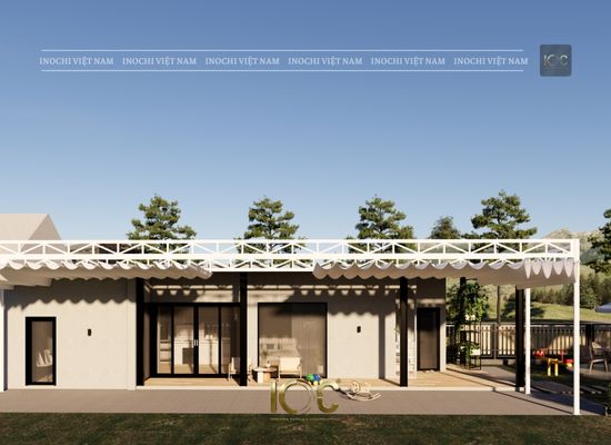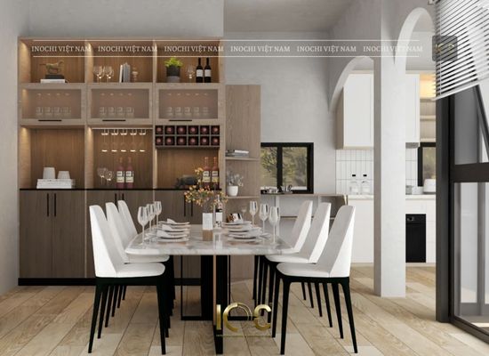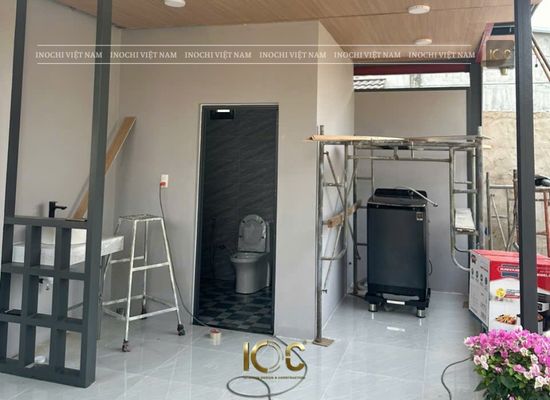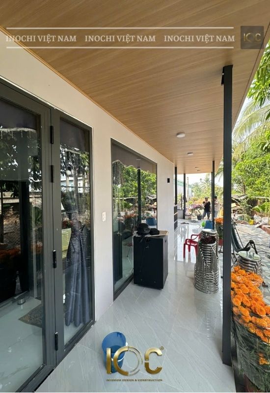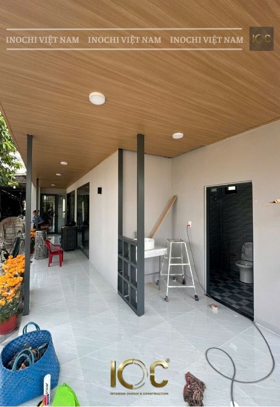 The wall is made of bricks and painted with Jotun paint. The ceiling is covered with nano.
