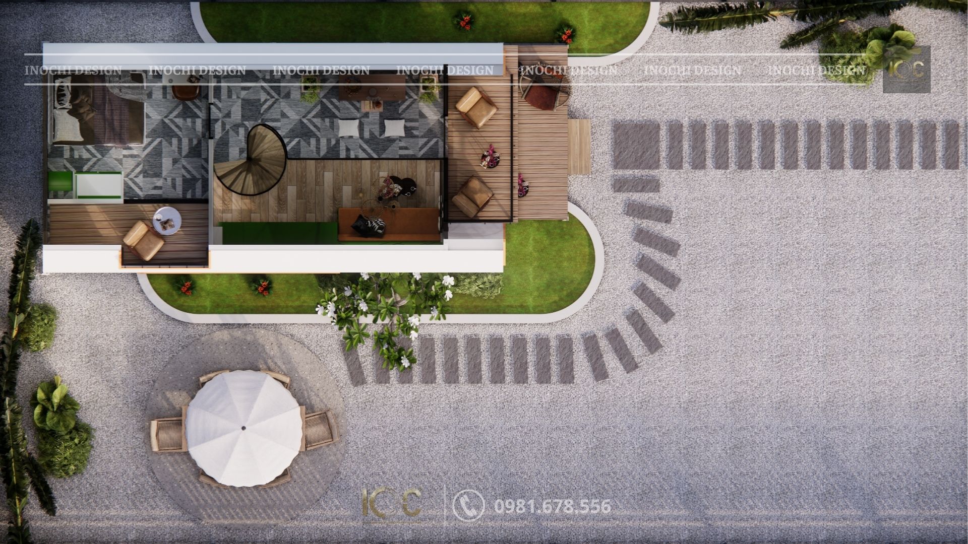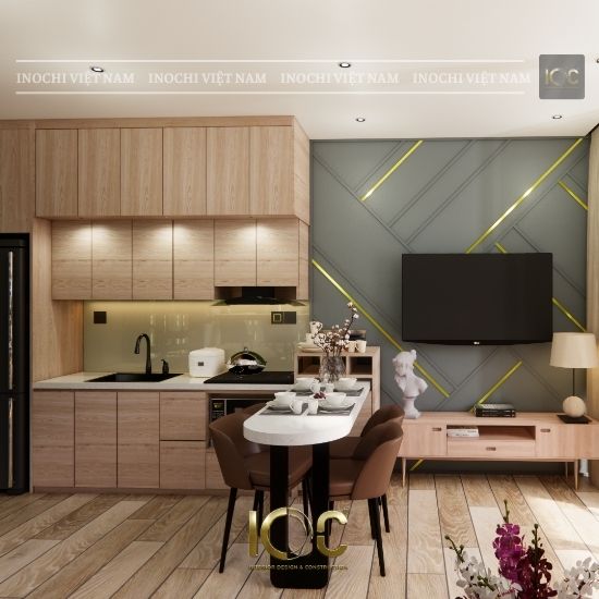Công năng: 2 phòng ngủ, 1 phòng WC, khu vực chung bao gồm phòng khách và phòng bếp, phòng thờ